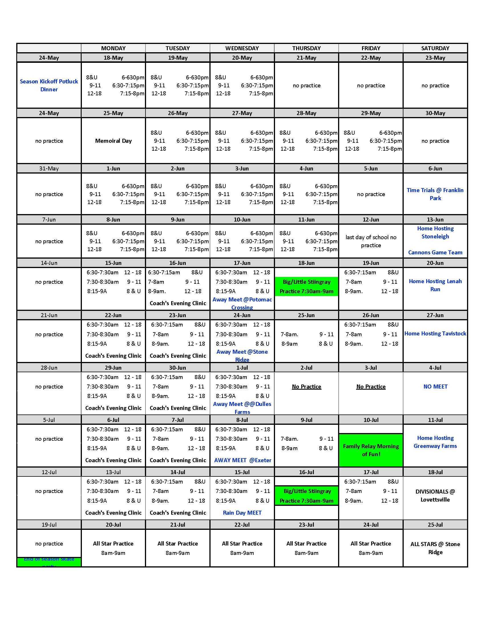 | Wed 17-Jun | Away Meet @Potomac Crossing |